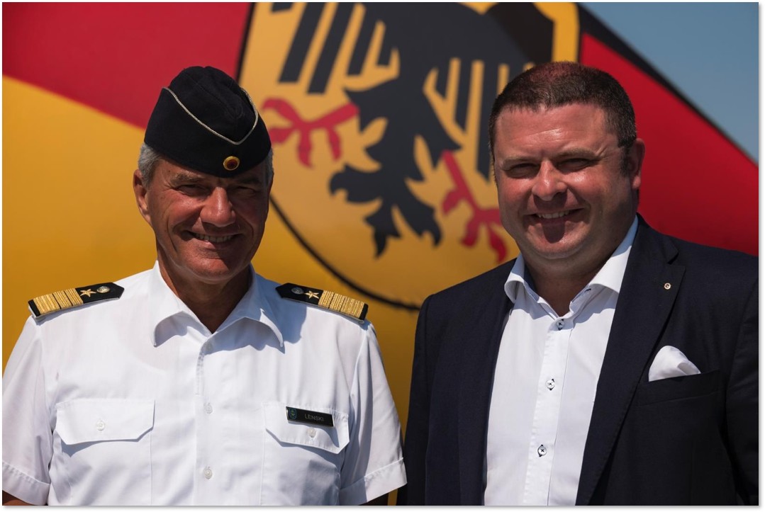 Frauenpower in der Deutschen Marine. Frau Korvettenkapitän Bianca Seifert ist die erste Korvettenkapitän der Deutschen Marine und kommandierte die Korvette Braunschweig, auf der ich am Morgen auslaufen durfte. Welche Ehre, sie anlässlich des Empfangs des Inspekteurs der Marine, Viceadrmiral Jan Christian Kaack, auf der Fregatte Schleswig-Holstein wieder zu treffen.